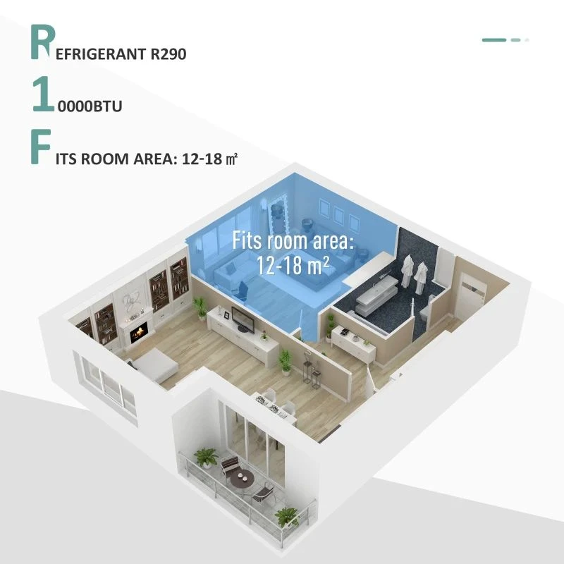 - Powerful R290 refrigerant and 10000 BTU instantly cools your room
