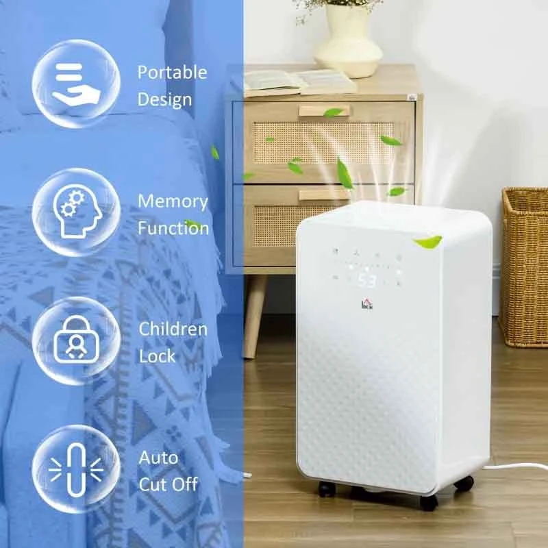 HOMCOM 10L Portable Dehumidifier with Air Purifier Filter – White – 821-027V70WT