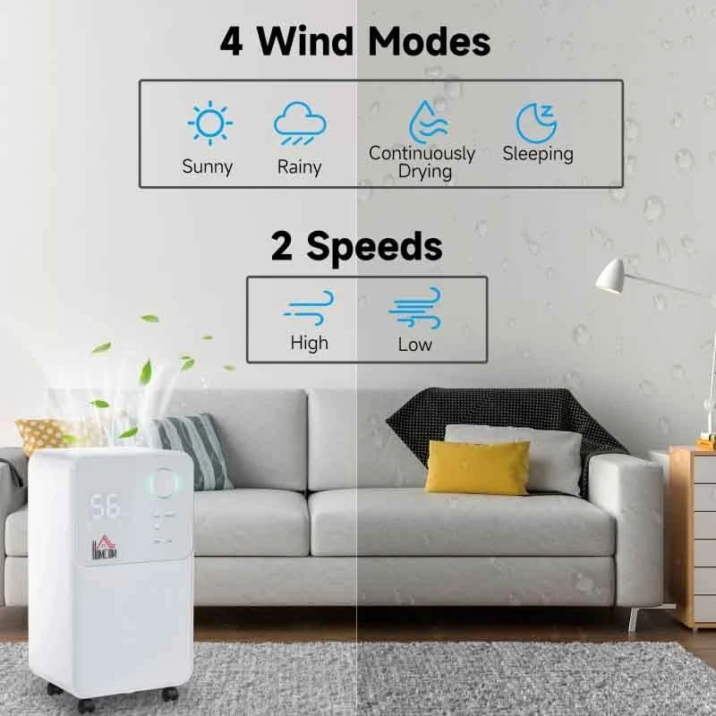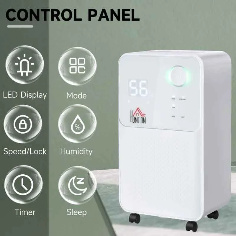 HOMCOM’s 12L compact dehumidifier is a must-have for maintaining a fresh home. It offers a changeable low and high speed, various humidity levels, and an LED panel for easy control. The compact size allows it to be placed almost anywhere, anytime. The dehumidifier is designed to combat excess moisture in homes.