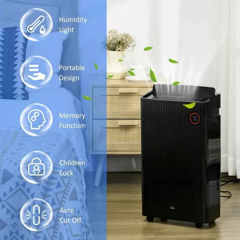 HOMCOM 16L Portable Dehumidifier with Air Purifier Filter – Black – 821-024V70BK