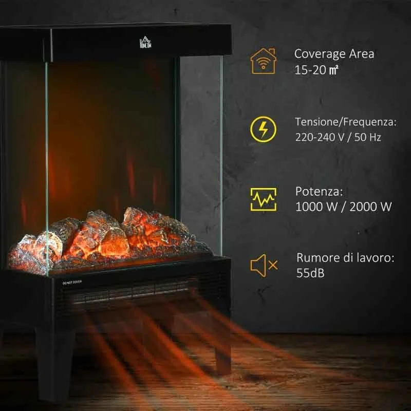 HOMCOM 180° Electric Fireplace Heater – Black – 820-301V70BK