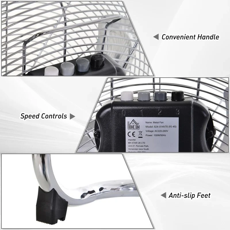 HOMCOM 20″ Chrome Metal Tabletop Fan – Silver – 824-014V70 – Details