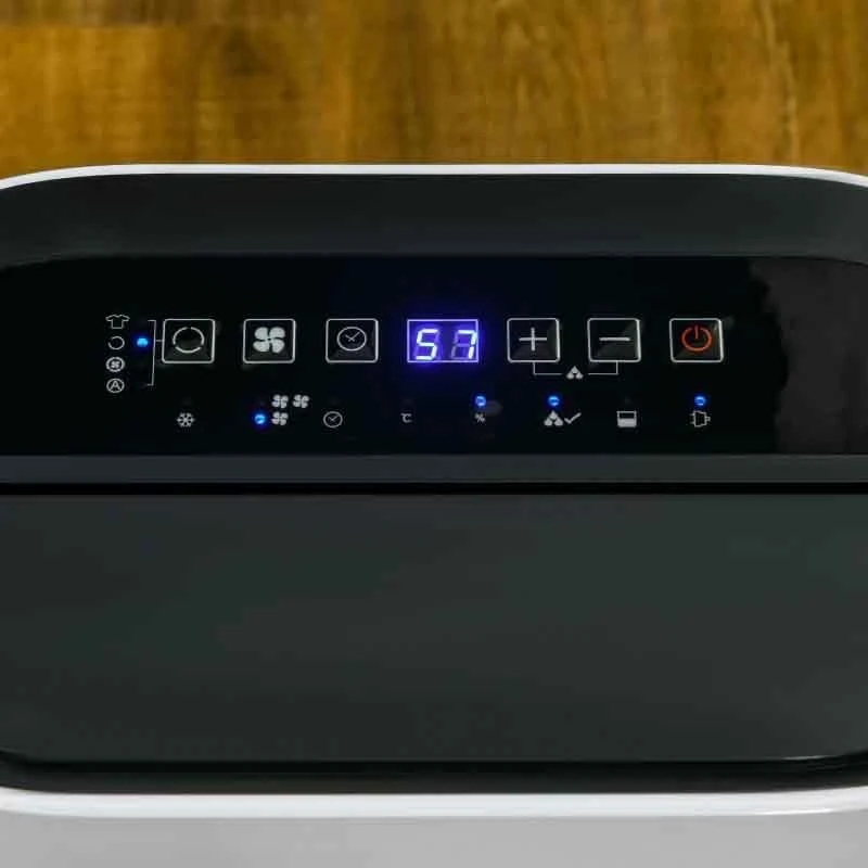 - Two speeds and four modes: dehumidification/continuous dehumidification/dryer/fan