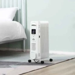 This sleek looking HOMCOM electric oscillating standing fan features 3 variable speed settings and 3 modes to meet varying cooling requirements. The useful 70º oscillation function directs air flow to where you need it most, whilst the 12-hour timer allows you to schedule a cooling cycle to save energy. This fans LED panel and remote controller provide an easy operation and the screen can be turned off to avoid any light disturbance at night.