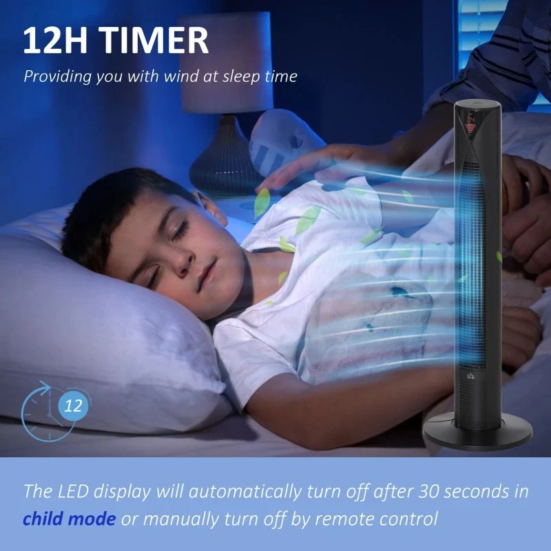 HOMCOM 38″ Oscillating Tower Fan – Black – 824-007 – Details