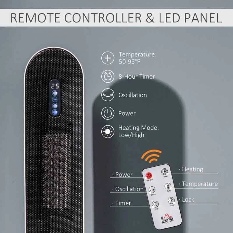 HOMCOM 45° Oscillation Tower Heater – White – 820-281V70