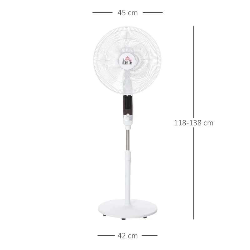Stay cool during hot Summer afternoons and nights with this HOMCOM electric fan. This oscillating standing fan features 3 variable speed settings and 3 modes to meet varying cooling requirements. The useful 85º oscillation function directs air flow to where you need it most, whilst the7.5-hour timer allows you to schedule a cooling cycle to save energy. This fans LED panel and remote controller provide an easy operation and the screen can be turned off to avoid any light disturbance at night.