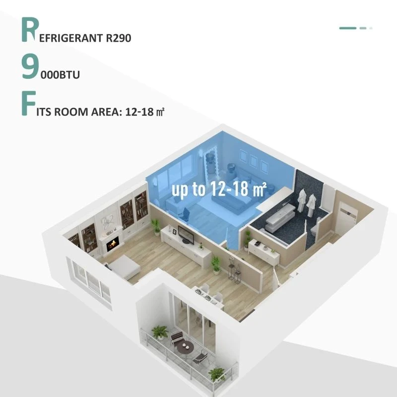 - Powerful R290 refrigerant and 9000 BTU instantly cools your room