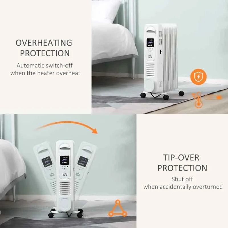 HOMCOM Digital Oil Filled Electric Radiator – 7 Fin – White – 820-265V70WT
