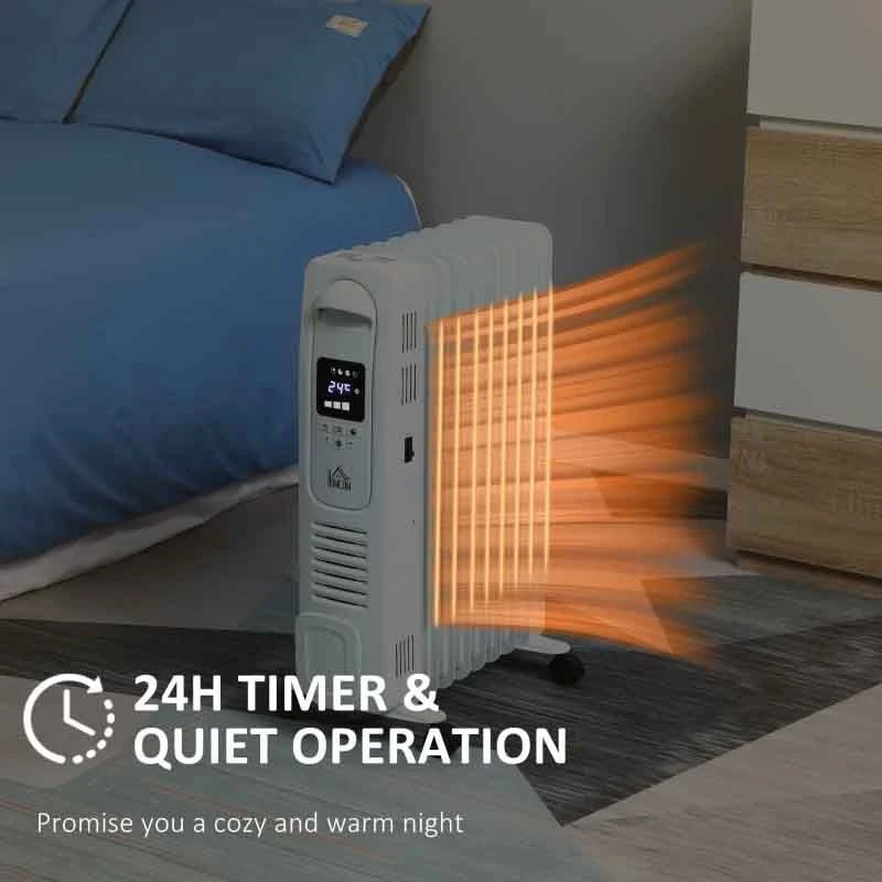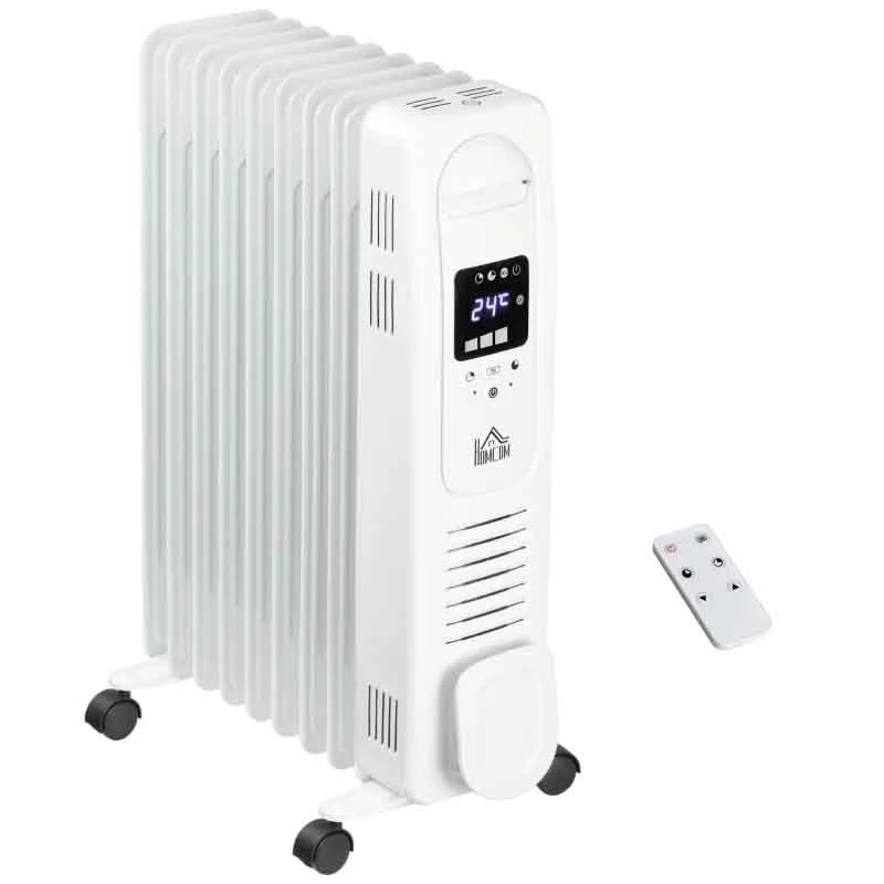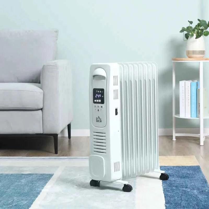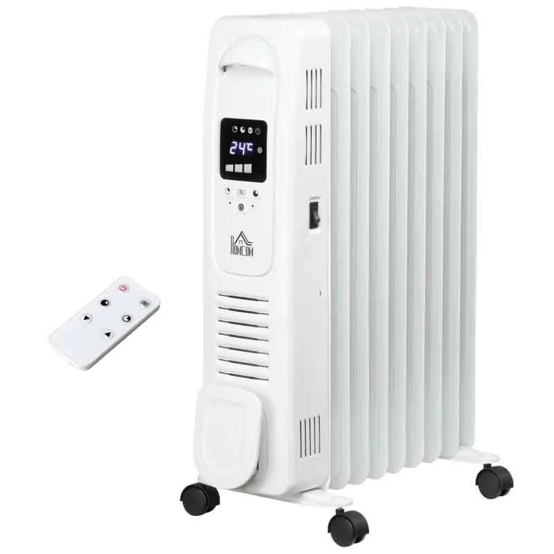 HOMCOM Digital Oil Filled Electric Radiator – 9 Fin – White – 820-267WT