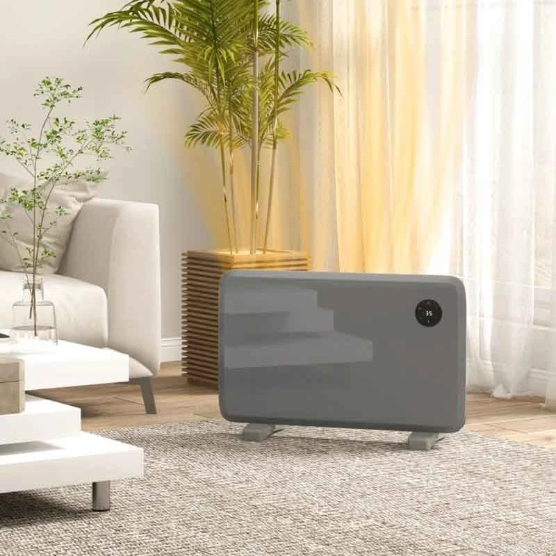 The HOMCOM 1200W Electric Convector Heater is a sleek and modern space heater that provides ample heat for evenings. Its slimline build and neutral color make it easy to adjust the temperature between 5-35ยฐC, and it features an LED screen for easy viewing.