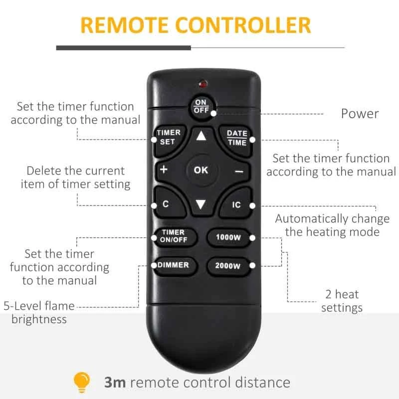 - 5-Level fire brightness, flame effect can be used independently without heat function
