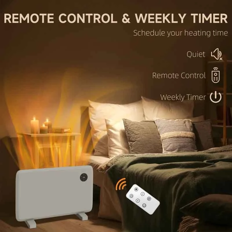 The heater also includes an integrated overheat protection mechanism for safety in case of overheating, accidental tipping, or sudden room temperature drops. The remote is included, making it a reliable companion for year-round warmth.