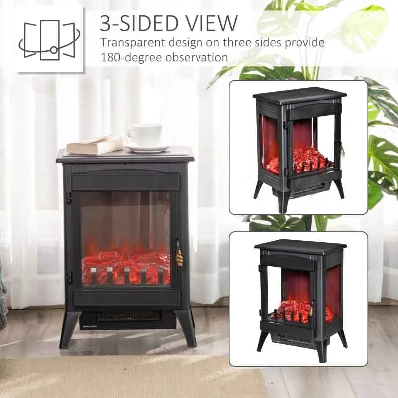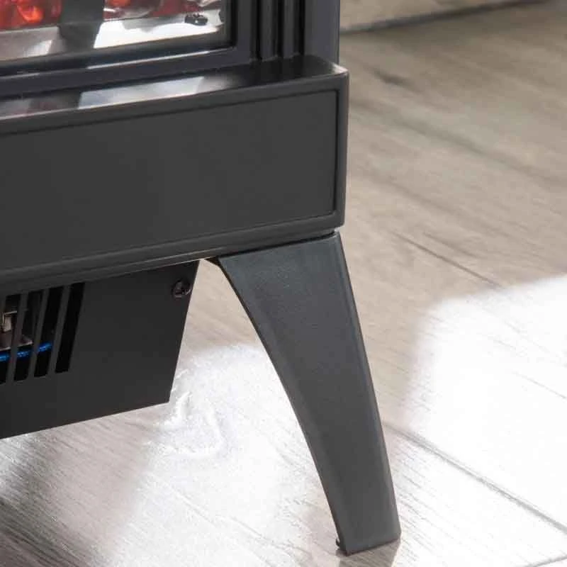 The HOMCOM freestanding electric fireplace features a transparent tempered glass window for a visually appealing experience. It offers an independent flame function, allowing for a visual or rolling fire anytime, bringing warmth and beauty to your home without occupying too much space.
