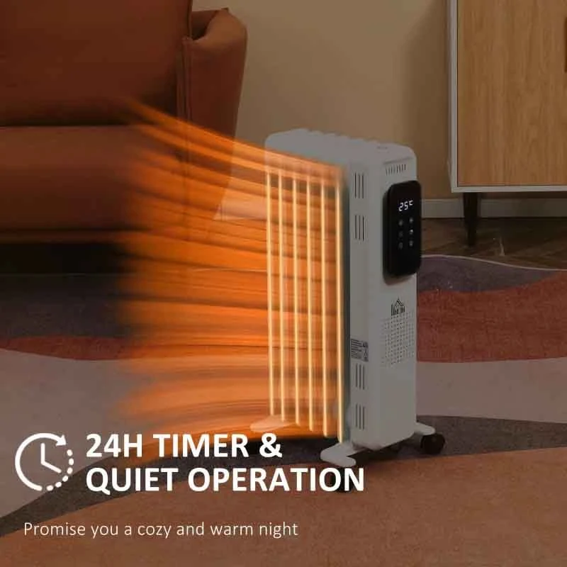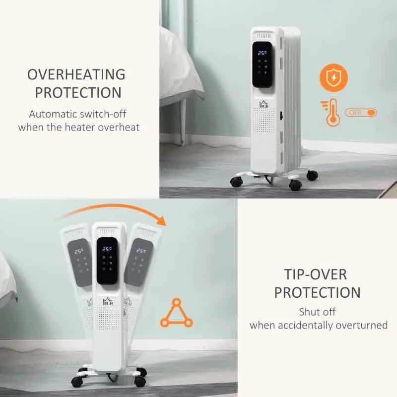 HOMCOM Oil Filled Electric Radiator – 7 Fin – White – 820-260V70
