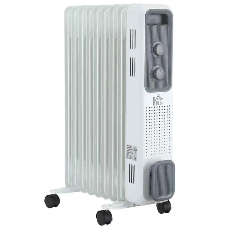 HOMCOM Oil Filled Electric Radiator – 9 Fin – White – 820-269