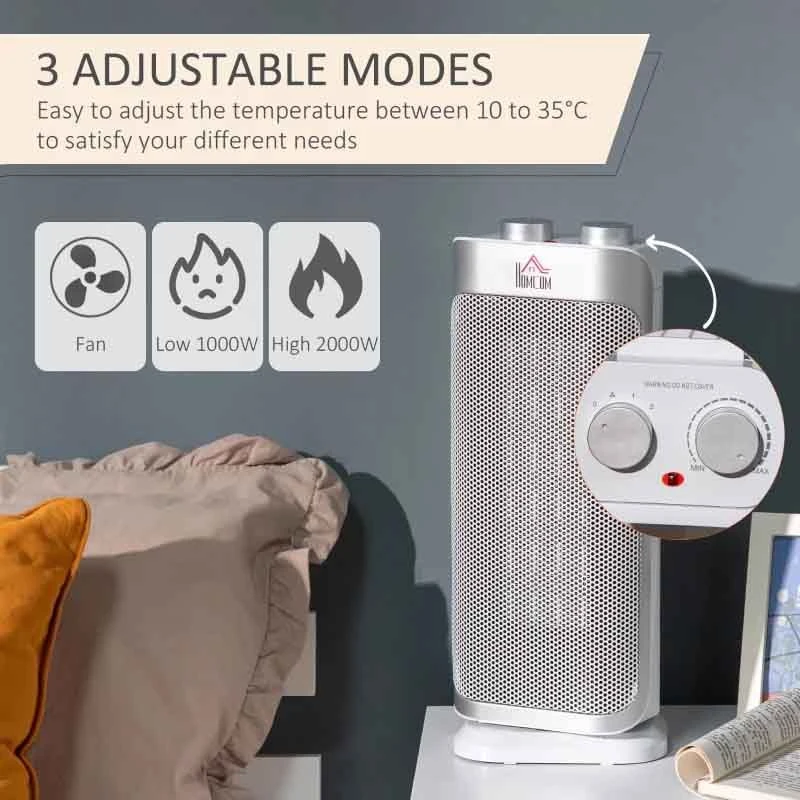 - Adjustable heating mode (Fan/Low/High) and temperature (10-35°C) to maintain a pleasant warmth in your room