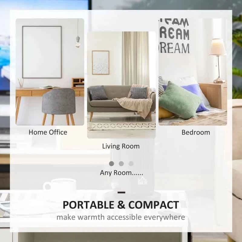 Crafted into a compact size, the portable radiator is suitable for standing on desks, tables and similar areas. It oscillates a maximum 45ยฐ to cover larger areas than expected, with 10ยฐC to 35ยฐC thermostat setting, to keep a comfortable temperature.