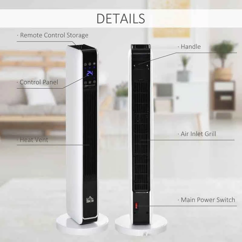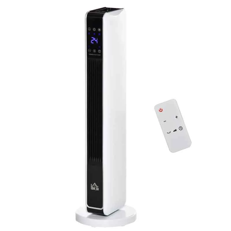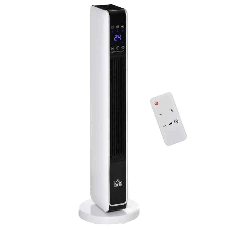 HOMCOM Oscillating Tower Heater with Remote Control – White – 820-249V70