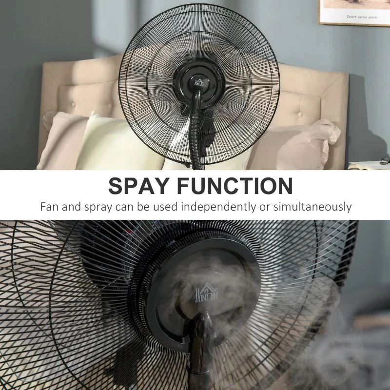 HOMCOM Pedestal Fan with Water Mist Spray – Black – 824-009V70BK – Details