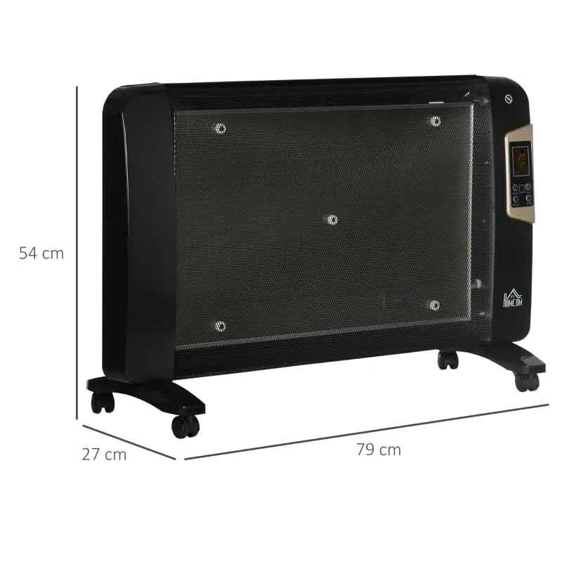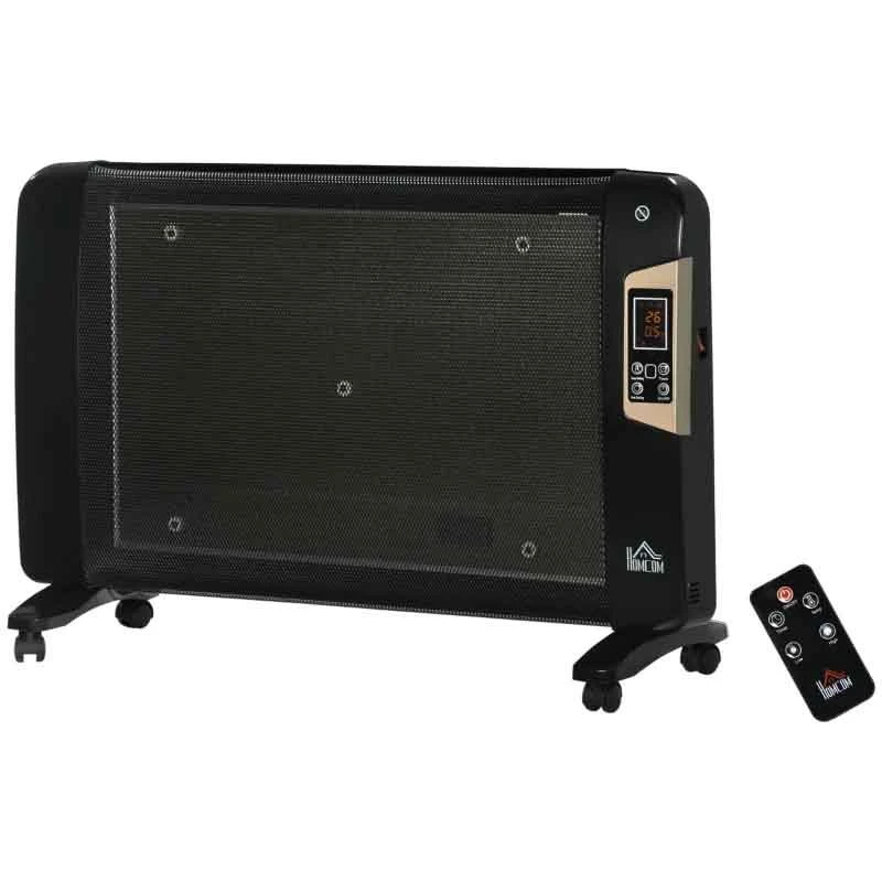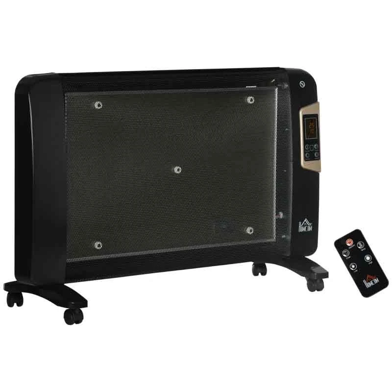 HOMCOM’s portable convector heater features an adjustable thermostat for 15-40ยฐC, with 1000W and 2000W settings for easy power adjustments. Its mica-glass panels can withstand high temperatures, providing safety. The heater’s sleek design and LED display make it easy to monitor and adjust settings from a distance. The heater also comes with a remote control for easy operation.