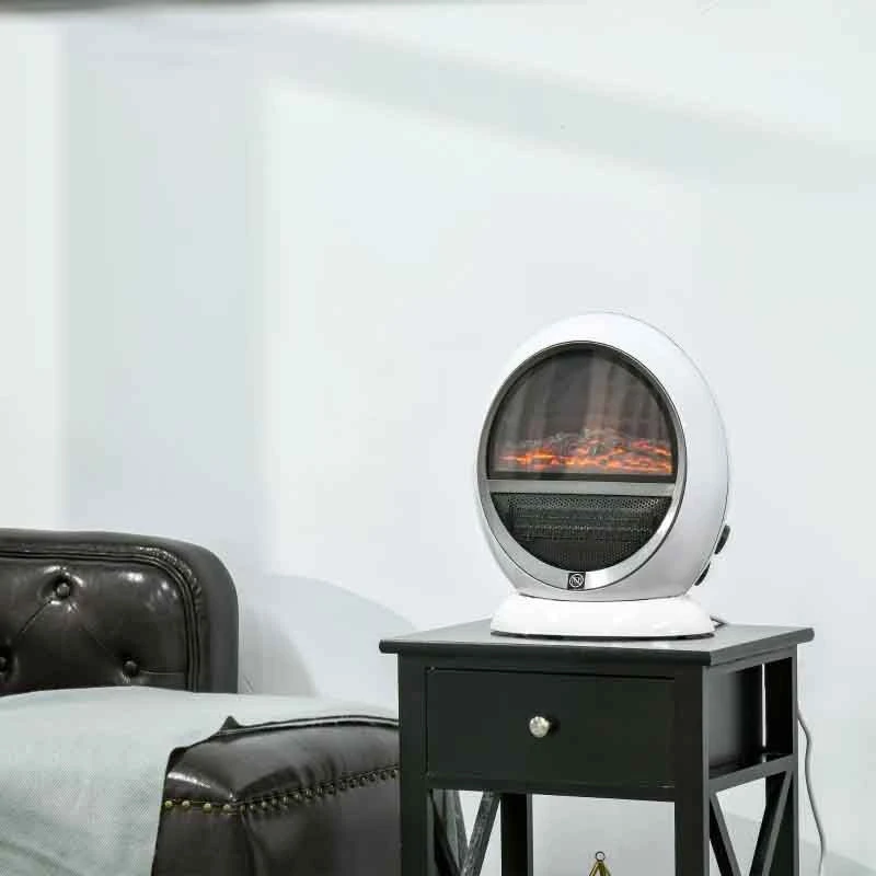 HOMCOM Rotating Electric Fireplace Heater – White – 820-221V70WT