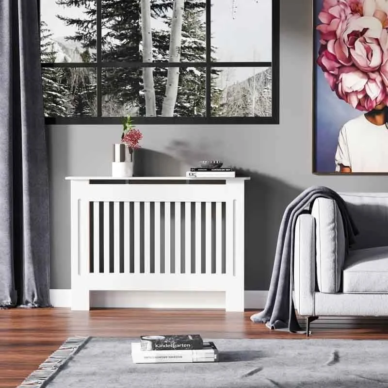 HOMCOM Slatted Radiator Cover – Small – White – 820-029