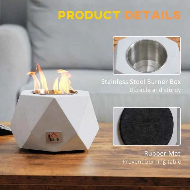HOMCOM Tabletop Bioethanol Fire – Angular – Grey – 820-331V00GY