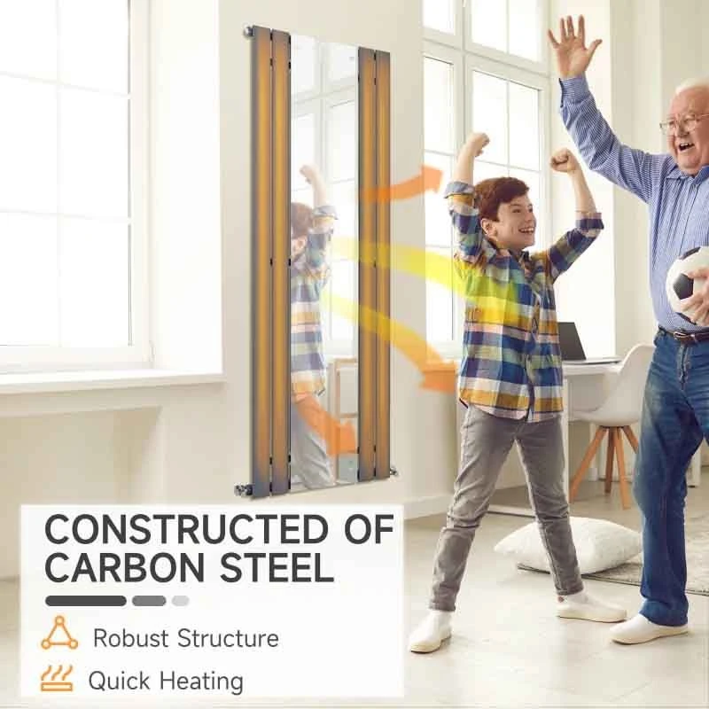 HOMCOM Vertical Water Filled Radiator with Mirror – Grey – 820-310V00GY