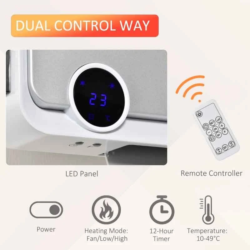 HOMCOM Wall Mounted Electric Downflow Heater – White – 820-252V70