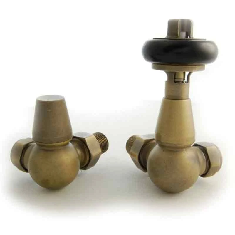 Towelrads Corner TRV & Lockshield – Old English Brass with Black Handle – 129064