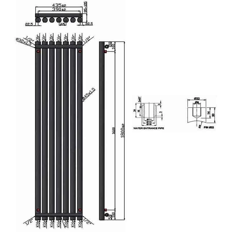 - Pipe Centres(mm):435mm