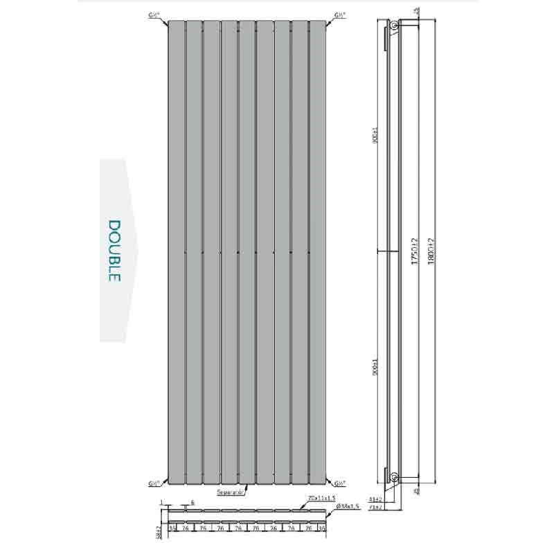 Towelrads Merlo Double Vertical Radiator 1800x672mm – White – 120901
